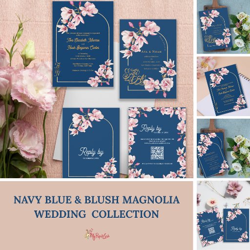 Navy Blue & Blush Magnolia Elegant WeddingDesigned by Mypaperlove Designs