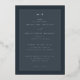 This elegant wedding invitation features a sophisticated dark gray background with clean, modern typography that exudes timeless charm. The design is simple yet refined, focusing on the text to convey an air of understated elegance and formality. Perfect for couples who appreciate classic style, this invitation sets a tone of grace and poise for their special day. It’s ideal for those looking to create a memorable and stylish first impression for their guests.