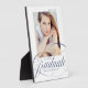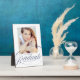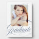 Celebrate your graduate's achievement with a custom graduation photo keepsake. The photo plaque features the graduate's photo with "graduate" displayed in an elegant navy calligraphy script. Personalise the modern graduation photo plaque by adding the graduate's name, school, and graduation year.