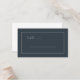 This elegant wedding place card features a minimalist design with a sophisticated dark blue background and clean, white lines. The cursive typography adds a touch of timeless charm, perfect for creating an intimate and refined atmosphere at your special event. With its simple yet stylish layout, it seamlessly complements any classic or modern wedding decor, ensuring that each table setting exudes grace and elegance. Customize the details to personalize your celebration, making this piece both functional and beautiful.