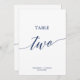This elegant navy calligraphy table two table number is perfect for a simple wedding. The neutral design features a minimalist card decorated with romantic and whimsical typography. The card prints on the front and back (double-sided). Other table numbers in the collection are sold separately.