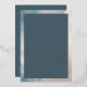 This elegant wedding invitation features a classic layout with a vertical orientation, framed by a delicate gold border that contrasts beautifully against the deep navy blue central panel. The design incorporates a soft gradient of sky blue to white around the edges, creating an airy and sophisticated feel. Serif fonts are used throughout, adding a traditional touch while maintaining readability, guiding guests through the event details in a clear and organized manner. The overall style is refined and modern, perfect for couples seeking a timeless yet contemporary look for their special day.