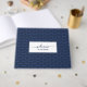 Elegant navy blue WELCOME TO OUR HOME Guest Book with customisable hospitality Bible verse on the back. TO OUR HOME is customisable so you can replace with your family name. Bible verse on the back is also customisable. Elegant script typography and subtle tiled pattern saying WELCOME makes this a stylish addition to the entrance of your home, your guest house or to your business reception area. Available in other colours.