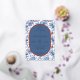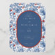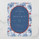 This elegant foil invitation features a classic blue and white color palette, adorned with intricate floral motifs that create a sophisticated and timeless look. The design showcases an oval central panel framed by ornate botanical illustrations, adding a touch of vintage charm. With clean, modern typography, the layout is both inviting and easy to read, making it perfect for formal weddings or upscale events. The overall mood exudes elegance and romance, ideal for celebrating a special occasion in style.