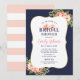 A beautifully layered bridal shower invitation featuring pink watercolor florals and greenery on a deep navy background with a gold bracket frame. The calligraphy name field in pink adds a romantic accent to the classic, garden-inspired design. All text is fully editable to customise your wedding shower details.