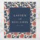 This elegant wedding wine label features a symmetrical layout with a central navy blue panel surrounded by an intricate floral pattern. The design showcases a harmonious blend of deep navy, coral red, and cream colors, creating a sophisticated yet warm aesthetic. Customizable text in a classic serif font highlights the names and date, making it perfect for personalizing your special day. The modern yet timeless style is ideal for celebrating love and togetherness at any wedding event.