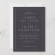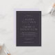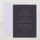 This elegant wedding invitation features a classic, symmetrical layout with clean lines and ample negative space on a deep navy background. The design utilizes a sophisticated serif font to convey formality and tradition, creating an inviting atmosphere perfect for a formal occasion. Customizable elements allow personalization of names, dates, and locations, ensuring each detail is tailored to the event. The overall mood is one of refined simplicity, making it ideal for couples seeking a timeless and polished look for their special day.