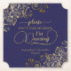 This wedding coaster is elegant, stylish, and fun! It features a beautiful navy blue and gold design with modern script lettering and delicate golden curls and swirls in the corners. The text reads "Please don't take my drink, I'm dancing" with space for the names of the couple and wedding date at the bottom. Great memento for your guests and also a practical way to let the wait staff know not to clear the drinks just yet!