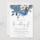 Elegant Navy Gold Florals QR Code Wedding Invitation