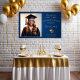 Elegant navy blue and gold graduation banner featuring stylish script fonts and a customisable photo. Perfect for celebrating your graduate’s achievement with a classic and sophisticated design. Customise for a personal touch!