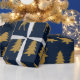 The rich navy background adds a luxurious touch, while the brushed-gold silhouettes create a warm festive feel—perfect for wrapping Christmas gifts, holiday hampers, kids' presents, and seasonal parties.