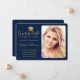 Elegant Navy Gold Script Photo College Graduation Announcement