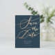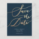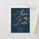 Elegant Navy Gold Script Save the Date Announcement Postcard