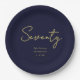 Celebrate a milestone in style with this elegant navy blue party plate featuring a chic gold “Seventy” script. Perfect for 70th birthday celebrations, adult parties, and classy milestone events. Personalize the name and date to create a unique, memorable touch for your special occasion. Ideal for women or men who love modern, minimalist luxury designs.