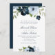 elegant navy & light blue floral wedding invitation