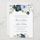 A blue wedding theme design with watercolor blue flowers and foliage. A perfect design for your winter and spring wedding. You can personalise the text and colour detail on this wedding invite.