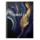 Elegant navy marble art faux gold glitter notebook