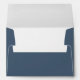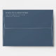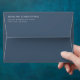 This wedding envelope features a minimalist design with a deep navy blue background and crisp white text, creating an elegant contrast. The layout is centred and vertically aligned, emphasizing simplicity and sophistication through ample negative space. Utilising clean sans-serif typography, the design focuses on clarity and readability, making it perfect for formal occasions. Its contemporary style conveys a professional yet approachable tone, ideal for weddings or other significant events.