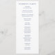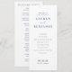 This wedding program features a clean, minimalist design with a vertical layout on an off-white background. The color palette includes dark navy blue for headings and black for details, creating a sophisticated contrast. Elegant cursive typography highlights the names, while a serif font lists the ceremony steps, ensuring clarity and readability. The overall style is formal yet approachable, perfect for conveying elegance through simplicity, making it ideal for weddings that celebrate love with understated grace.