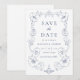 Elegant Navy Ornate Floral Frame Wedding Save The Date