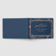 An elegant, navy and rose gold wedding guest book, with a beautiful floral border, and script lettering. Customise with your names, and wedding date.