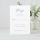 This elegant wedding RSVP card features a minimalist design with a clean white background and deep navy blue text. The layout is structured, with the word "RSVP" prominently displayed in cursive at the top, followed by a simple serif font for additional details. Customizable fields allow for personalization, including spaces for names and attendance numbers. The overall style exudes sophistication and formality, making it perfect for couples seeking a classic and refined touch for their wedding invitations.
