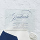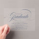Celebrate your graduate in style with our simple and modern graduation party invitations! Featuring the word "Graduate" in elegant navy calligraphy, these unique invitations are designed with a sleek frosted or transparent acrylic background that adds a touch of sophistication to any celebration. Easily customise these acrylic graduation invitations with the graduate’s name, graduation year, school name, and all the important party details. Perfect for showcasing your high school or college graduate’s milestone, these stunning invitations will leave a lasting impression on your guests.
