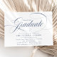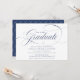 Elegant graduation party invitations featuring "Graduate" in a navy modern calligraphy script. Personalize the navy graduation party invitations by adding the graduate's name, graduation year, school name, and graduation party details. The trendy graduation party invites reverse to display a white trellis pattern with a navy background.