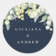 Elegant Navy Snowberry+Eucalyptus Wedding Classic Round Sticker