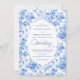Make a refined first impression with this wedding invitation featuring classic French toile de jouy roses in elegant shades of navy blue, royal blue, dusty blue, and deep blue. Inspired by timeless European floral design, this invitation blends traditional sophistication with modern elegance, perfect for a classic, romantic, or formal wedding celebration.