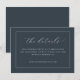 This elegant wedding enclosure card features a minimalist design with a deep navy blue background and crisp white text, creating a sophisticated and timeless look. The layout is centered, with an eye-catching cursive script for the phrase "the details" at the top, followed by clear instructions in a clean sans-serif font. The generous spacing between lines enhances readability, while the absence of decorative elements keeps the focus on the essential information. Perfect for directing guests to your wedding website, this card exudes professionalism and understated elegance, making it ideal for formal occasions.