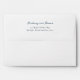 This wedding envelope features a minimalist design with centred text on a clean white background, creating an elegant and modern look. The names are displayed in a sophisticated cursive script, while the address is written in a traditional serif font, both in deep navy blue for a refined contrast. The layout emphasizes typographic elegance with ample negative space, making it perfect for formal announcements. Its understated style conveys professionalism and sophistication, ideal for couples seeking a classic yet contemporary aesthetic for their special day.
