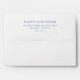 This wedding envelope features a minimalist design with a clean, white background and deep navy blue text. The layout is vertically orientated, emphasizing simplicity and elegance through ample negative space and centred typography. A serif font adds a touch of sophistication, making it perfect for formal occasions. The structured format highlights the names and address, ensuring clarity while maintaining an uncluttered appearance. Ideal for weddings, this envelope exudes a professional and polished vibe.