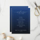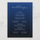 This elegant wedding program features a deep navy blue background with a clean, centered layout that exudes sophistication. The design combines flowing cursive script for the welcoming message and crisp sans-serif fonts for the ceremony details, creating a harmonious balance between modern and classic styles. Ample negative space enhances readability while maintaining an understated luxury feel. Perfect for formal weddings, this template allows customization of names and dates, making it ideal for personalizing your special day.