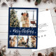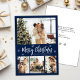Elegant Navy White 4 Photo Collage Christmas Holiday Card