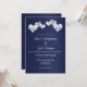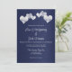Elegant Navy White Wedding Invitation designed with soft white hearts on a navy coloured background. The front invitation text includes: Together With Their Families, The Bride and Groom's Full Names, Request the Honour of Your Presence at Their Wedding, The Date and Time, The Wedding Location and Address, Reception to Follow. The Reverse side text includes: RSVP and the contact details. To personalise, simply insert your text into our easy template, replacing the sample wording.