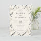 This elegant wedding invitation features a modern yet classic design with an abstract brushstroke pattern in shades of grey and beige, creating a dynamic backdrop for the central oval frame. The off-white background within the oval highlights clean, sophisticated typography using a classic serif font that enhances the formal tone. The layout is symmetrical and balanced, conveying a mood of celebration and formality perfect for a significant life event like a wedding. Customisable text fields allow personalisation while maintaining the timeless aesthetic, making it ideal for couples seeking both style and functionality in their invitations.