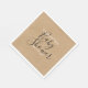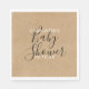 Elegant script gender neutral baby shower paper napkin featuring modern black and white text on a rustic kraft background. Personalise with your special event details. Designed by Thisisnotme©