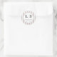 This Classic Round Sticker features a sophisticated design with alternating beige and white stripes, creating an elegant border around the central initials "L" and "B." The minimalist layout includes a simple yet stylish font for the phrase "Thank You," conveying gratitude in a refined manner. Perfect for personalizing gifts or expressing appreciation, this sticker combines a classic color palette with a modern aesthetic, making it ideal for various occasions such as weddings, birthdays, or thank-you notes. Its clean and timeless look ensures it complements any packaging or gift beautifully.