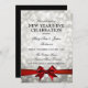 Elegant New Years Eve Silver Bokeh Lights Red Bow Invitation