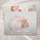 Elegantly sweet birth announcements feature your favourite newborn photo, baby's name and birth stats in white chic lettering. A photo collage and parent's names on the back. *TIP: You may want to size the 2 square photos on the back BEFORE uploading them for easy placement. **The Live Design Service can help you with your design layout if needed.