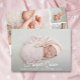 Elegantly sweet birth announcements feature your favourite newborn photo, baby's name and birth stats in white chic lettering. A photo collage and parent's names on the back. **TIP: You may want to size the 2 square photos on the back BEFORE uploading them for easy placement. Single photo design and more in our store.