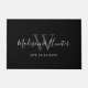 Elegant Newlywed Black White Script Monogram Name Doormat