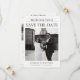 Elegant Newspaper Black and White Photo Wedding Save the Date.