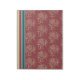 An elegantNotepad or Jotter, with a formalised floral pattern and deckchair stripes in beige and dark blue on a rich burgundy background.