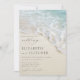 Perfect for destination weddings, this elegant summer beach wedding all-in-one invitation with classy beautiful handwriting script features a close-up photo of a beach shoreline with an ocean wave and seafoam. On the back is online RSVP information with wedding website and QR Code.