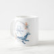 This ocean themed mug is designed with a blue and pink watercolor floral wreath, with a blue whale at the bottom. The middle of the wreath includes a customizable monogram, that you can personalize with a name and initial.