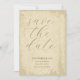 Set the tone for your wedding with this chic yet elegant Save the Date card, featuring a sophisticated off-white background with subtle grunge edges for a timeless vintage touch. The design showcases a beautifully stylised script for "Save the Date", perfectly balanced with modern Cormorant fonts for the names of the couple and wedding details. Fully customisable to reflect your unique love story, this design is ideal for couples seeking a refined yet contemporary aesthetic with a hint of antique charm.