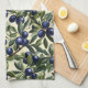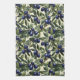 Elegant Olive Branch Pattern with Deep Blue Olives Tea Towel