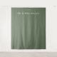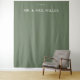 This elegant wedding backdrop features a minimalist design with a solid olive green background, creating a sophisticated and timeless atmosphere. The centred text is displayed in a clean, bold serif font, offering a classic touch that complements any formal event. Customisable date options allow for personalisation, making it perfect for celebrating your special day with style and grace. The simple layout emphasizes the joyous occasion, ensuring your wedding photos capture the essence of elegance and refinement.